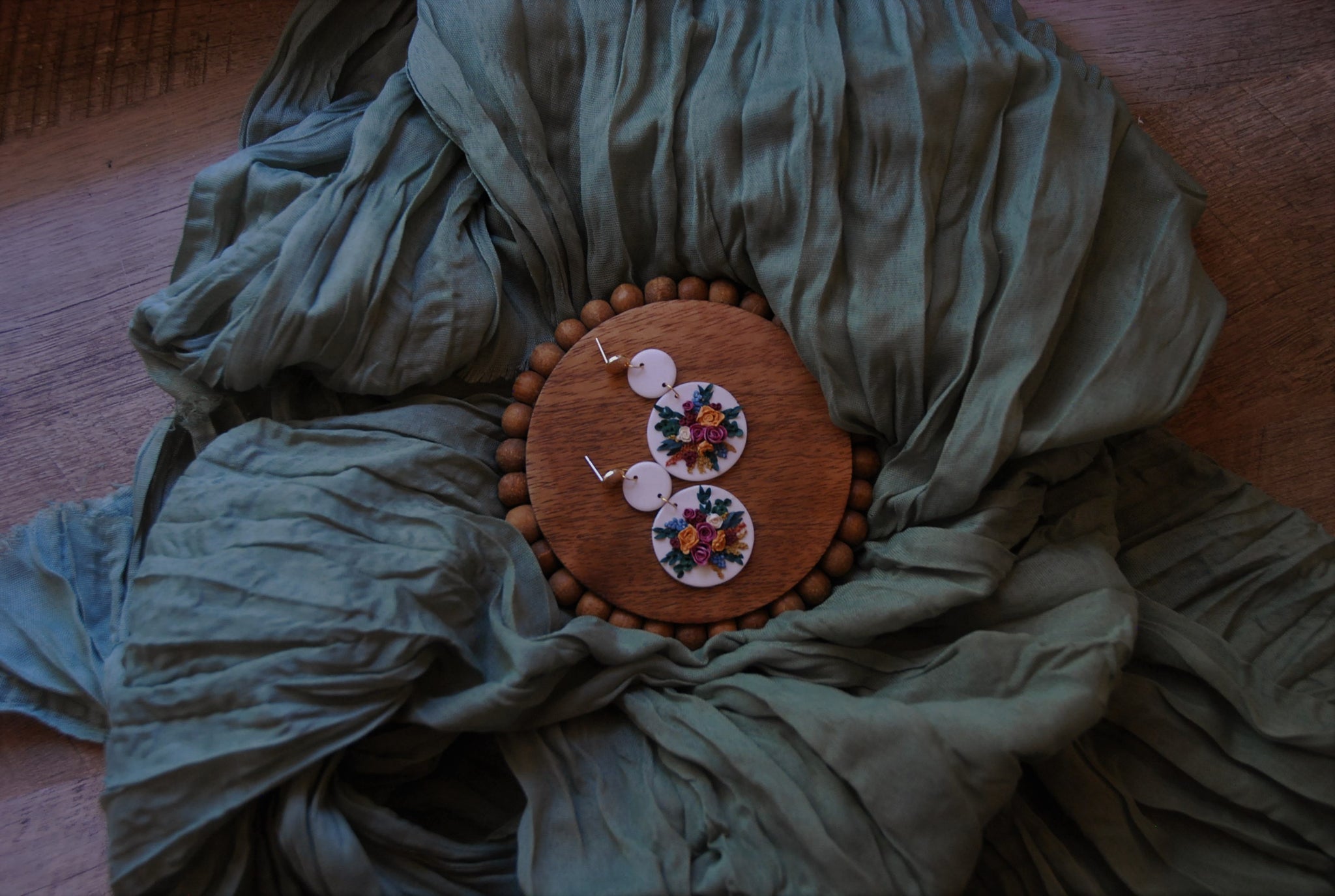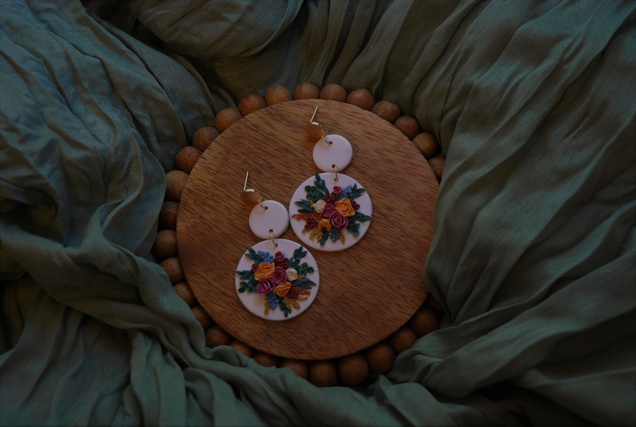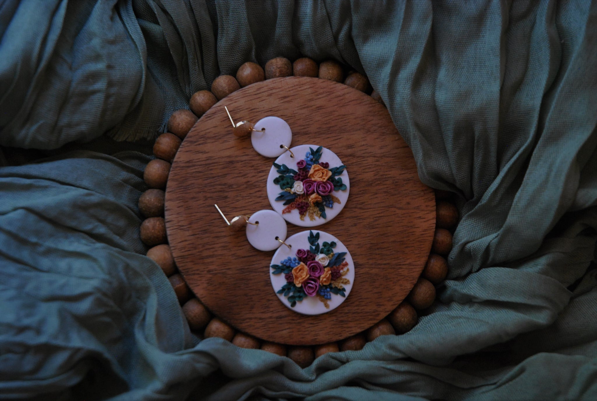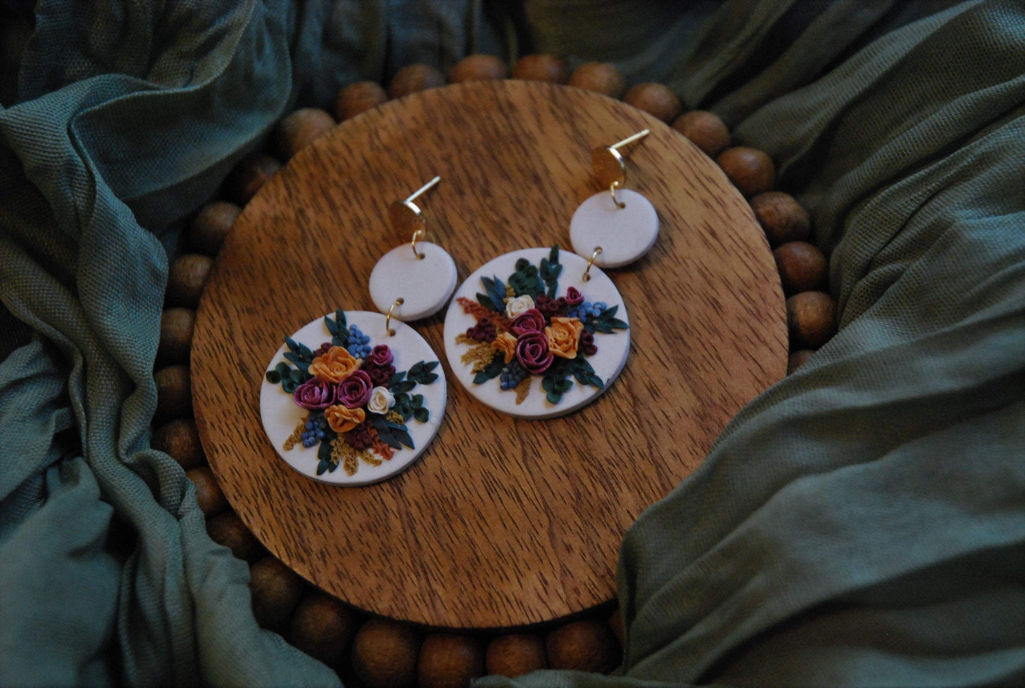 Hand-sculpted with extreme detail, these clay earrings capture the rich hues of a fall floral bouquet in a vibrant autumn palette. Durable and waterproof, they offer lasting beauty without worry. Perfect for adding a warm, natural touch to any outfit, these earrings combine artistry and resilience for everyday wear.