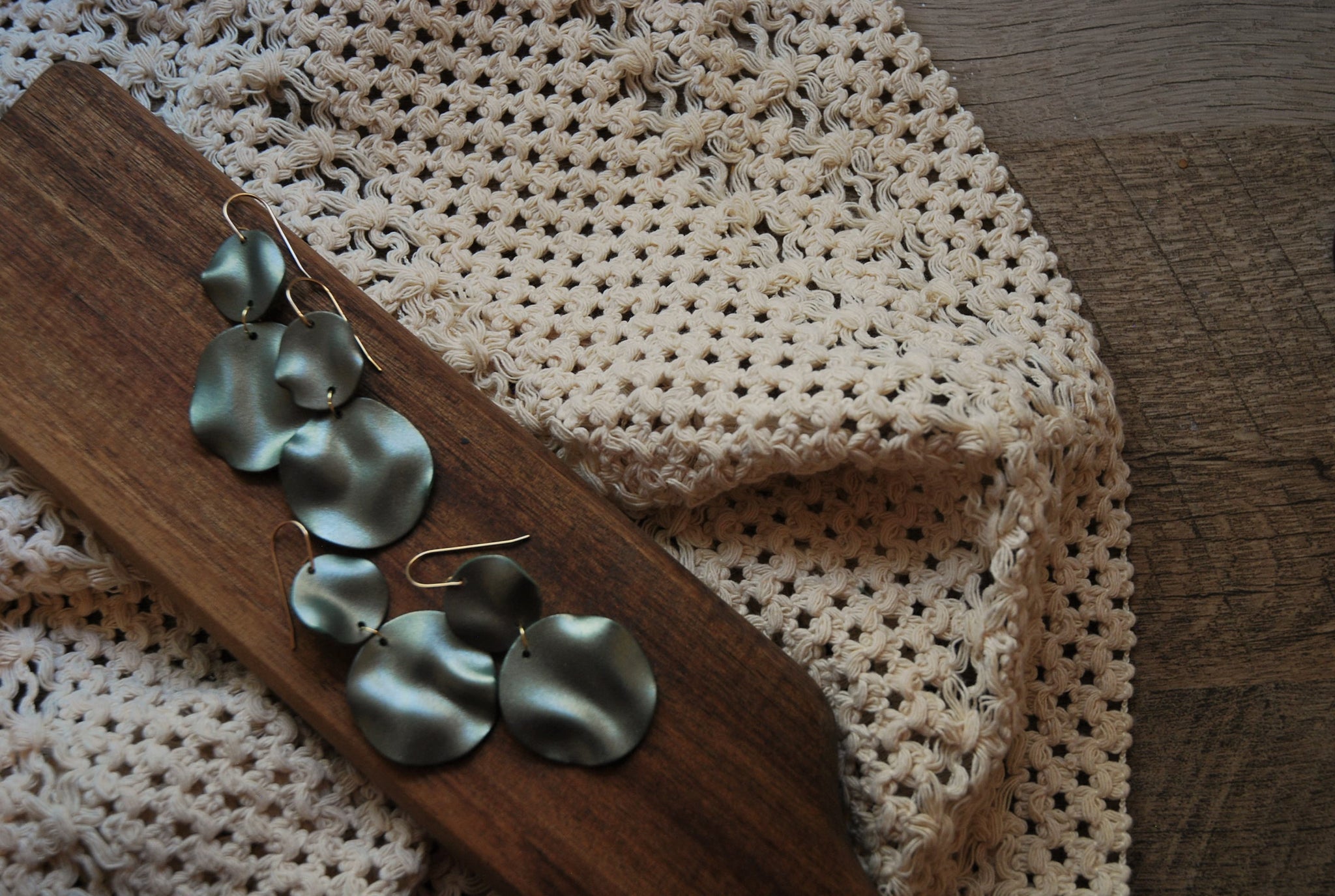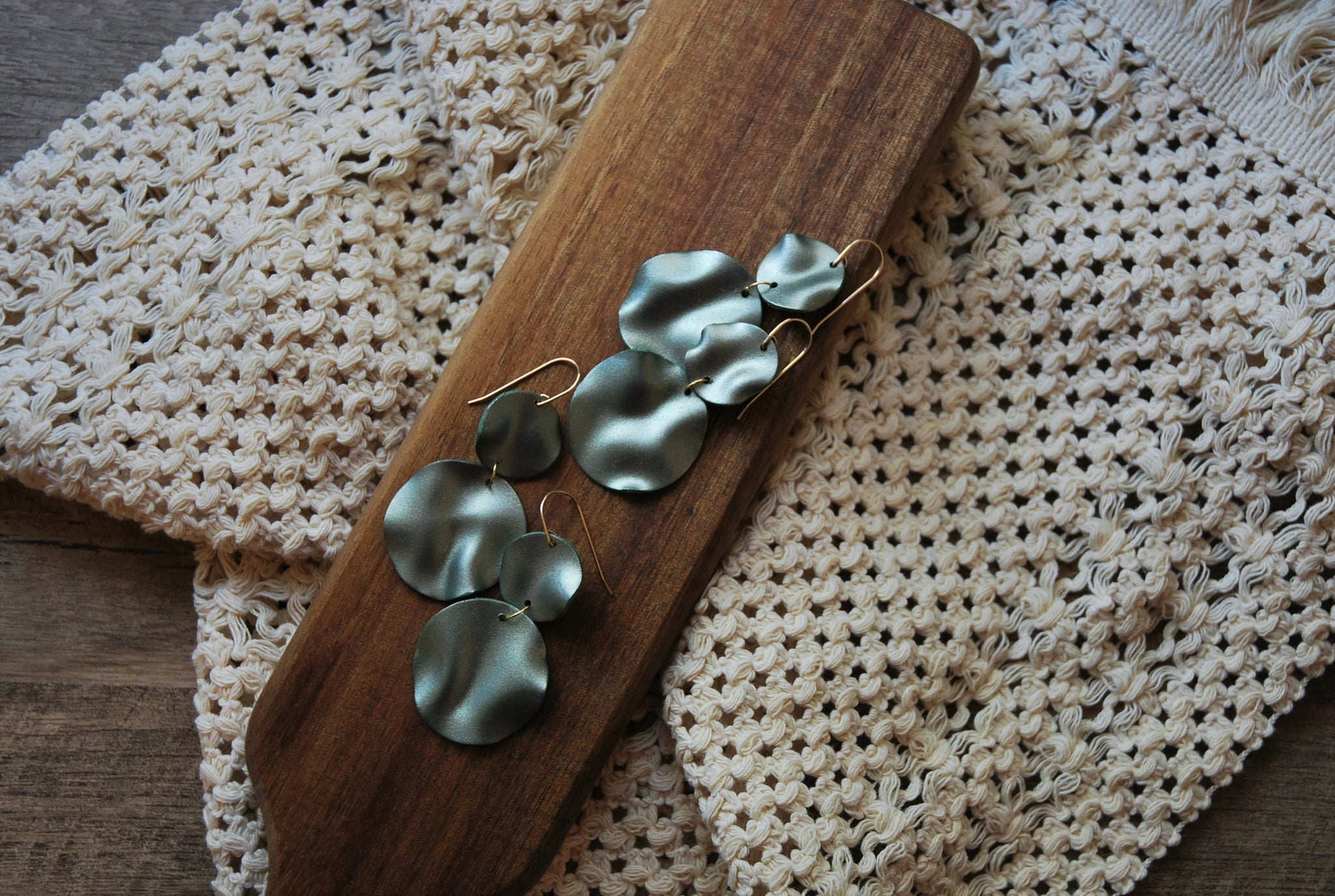 Elevate your style with these handmade Teal Shimmer Dangles. Crafted from lightweight clay, their unique shimmer and vibrant teal hue catch the light beautifully, adding a touch of elegance to any outfit. Perfect for those who appreciate artisan accessories that combine comfort with standout design.