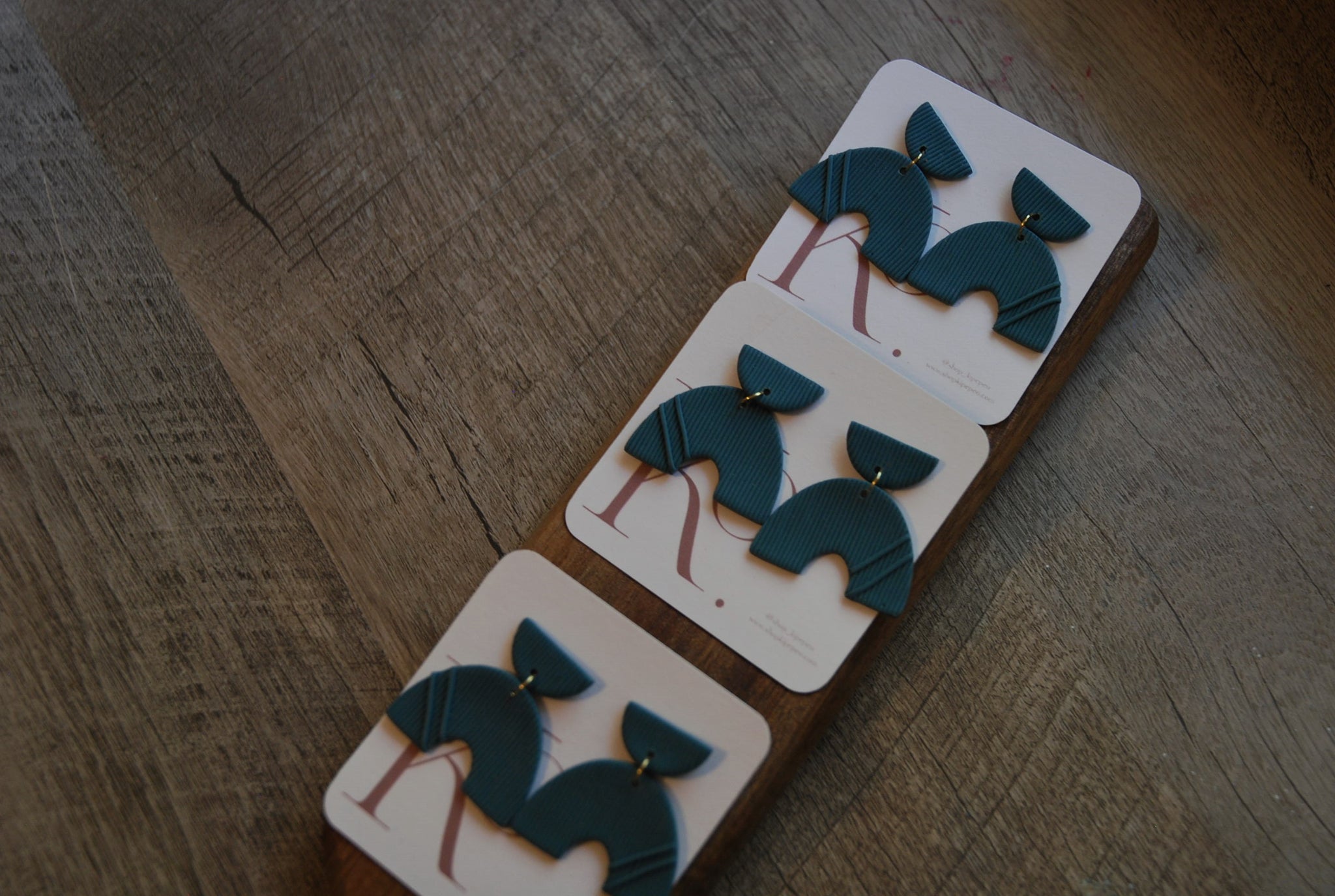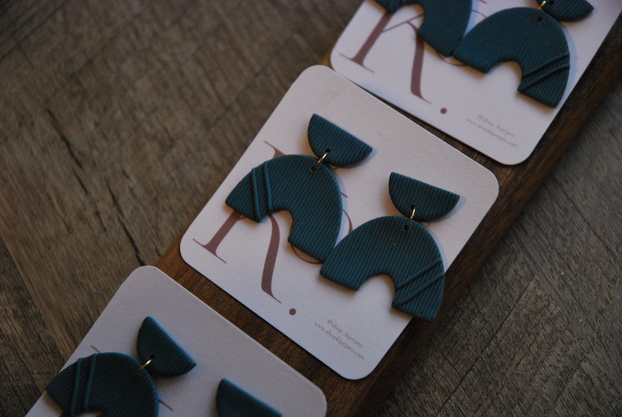 Add a pop of calming teal to your look with these Teal Texture Arch Dangles. Crafted from lightweight clay, they offer comfort for all-day wear. Their simple arch design with subtle textured details elevates any outfit with understated elegance. Perfect for those who appreciate minimalist style with a unique touch.